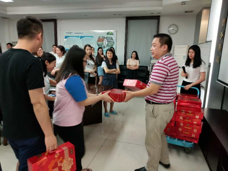 接下来就是福利大派送啦!兰总为我们远景达的家人送上一盒盒粽子,无论是否回家与家人过节,都让我们体会到了家的感觉。