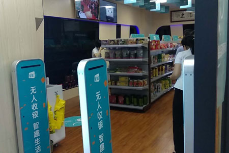 3、将商品放入自助收银台,自动识别商品并打开手机付款码扫码支付,最后自动检测商品支付状态完成离店即可。