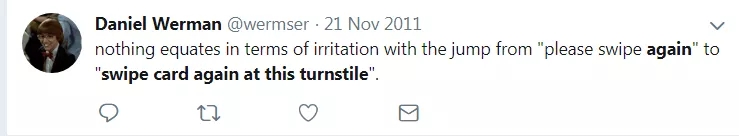 在让人戳火这件事上,没有什么能比得上显示器从“请再刷一遍 ”跳到“在旋转栅门口再刷一遍”
