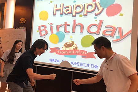 9月11日,在我司行政部门的积极筹备下,远景达人齐聚一堂为六月到九月生日的员工举办了一场生日会。