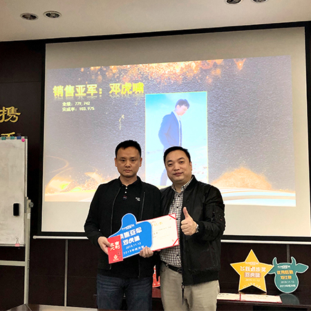 邓虎啸,在本次活动中展露锋芒,一个个订单接二连三到手,轻而易举的完成目标金额,获得本次销售亚军荣誉,并且带来业绩环比增长984%,获得本次活动中飞跃进步奖。