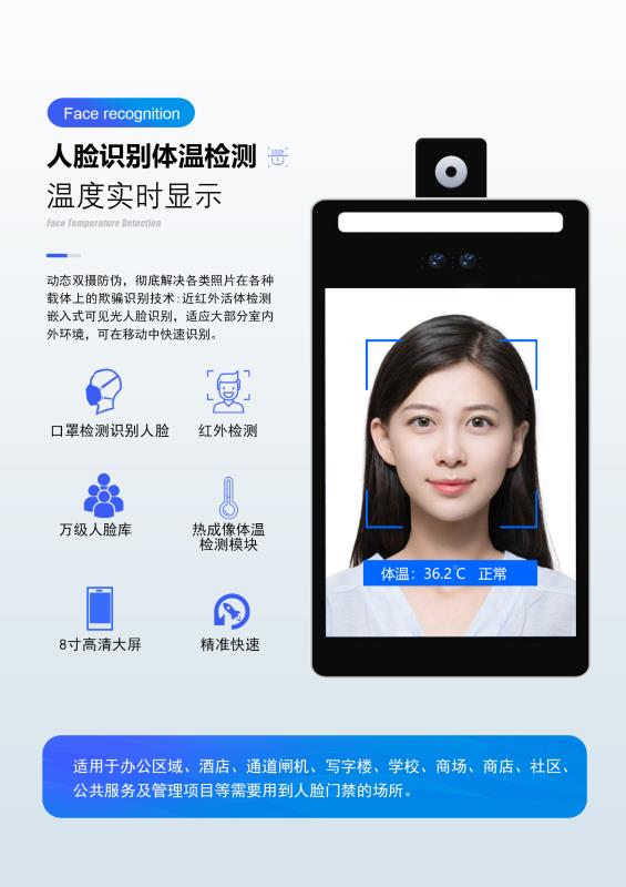 人脸识别红外测温门禁一体机助力疫情安全办公