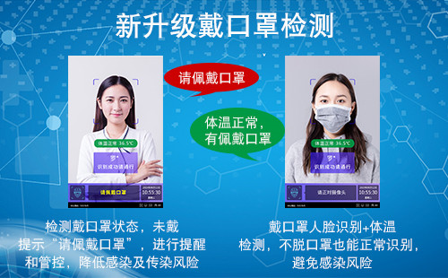 近日,远景达研发推出温度检测人脸识别终端,用于人员进出管理及门禁开门和打卡考勤。被考勤人员在进场、离场时,按照设备使用规则,通过识别设备,在设备上进行人脸打卡操作,并配合对闸机或门禁设备的开门控制,实现对人员出入管理。新增了红外测温功能,和选择佩戴口罩,人证比对功能。