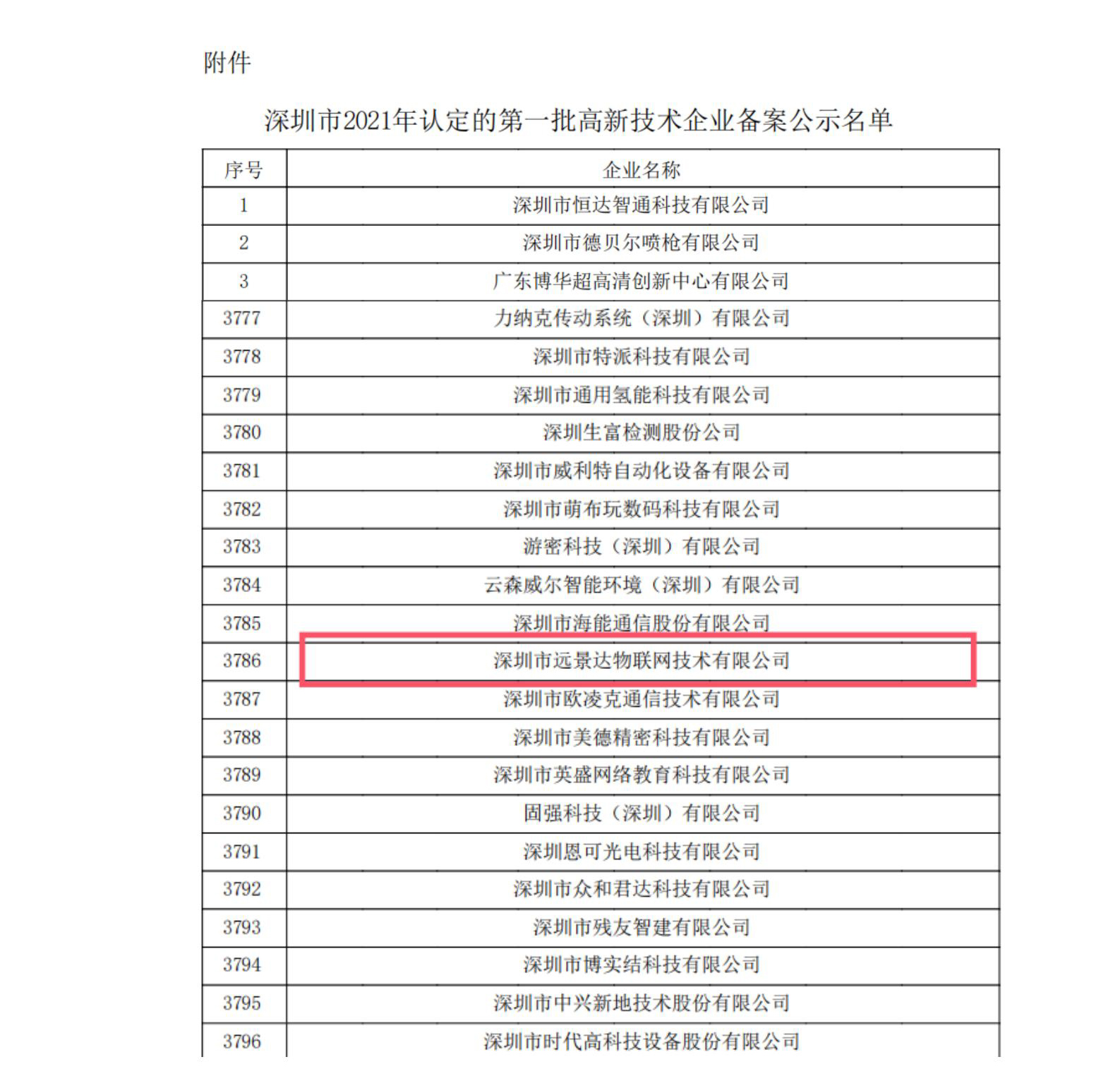 深圳市2021年认定的第一批高新技术企业备案公示名单