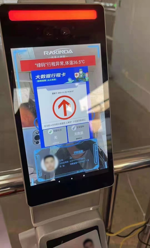 值得一提的是,医院扫健康码的机器大多采用的是深圳远景达(RAKINDA)自主研发的F6-TH人脸识别测温健康码核验闸机,集成查验身份证、健康码、核酸及行程信息等功能于一体,同时配备私有化部署的大数据可视化管理平台方便精准流调。掏出身份证或医保卡,放在刷卡识别区域;或者将手机健康码对准闸机扫描区域扫码,“嘀”一声之后,屏幕随即显示:健康码“绿码”请通行!并同步显示出患者的姓名、身份证号的部分信息、实时体温、核酸检测、新冠疫苗接种等防疫信息数据,与此同时,机器也会同步发出语音提醒进入。在防疫扫码测温过程中,通过闸机验证健康码状态+测温、人证比对+测温+获取健康状态,一次性便可完成身份与健康查验等程序。
