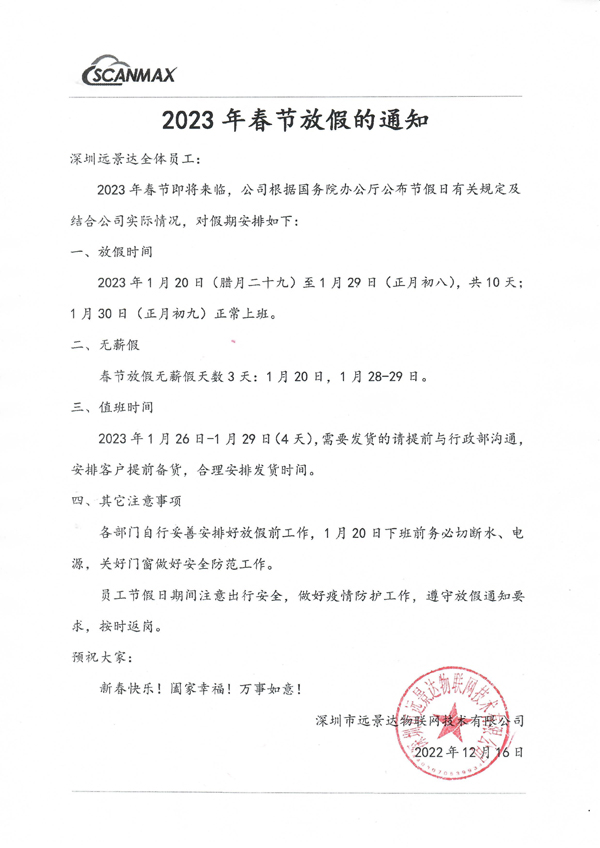 远景达物联网|2023年春节放假通知