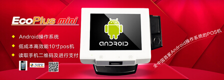 ECOMINI安卓POS机,国内首款安卓双屏异步显视POS机,内置安卓操作系统,搭配飞思卡尔中央处理器,具备高稳定性、不死机、不蓝屏等特点;配备多点触摸电容屏,操作便捷,手感舒适;采用工业电路和组件设计,接口丰富,可集成周边通用的设备驱动(客显,打印机设备,钱箱,扫描设备等);外形精巧,可适应狭隘的收银环境,目前已经在连锁商超、各类专卖店、金融业、公共事业等多个行业中得到广泛应用,受到了用户的广泛好评。此外,ECOMINI安卓POS机不仅要满足收银端应用需求,主屏可选配一维/二维条码模块,可做壁挂式超市商品价格查询机使用。