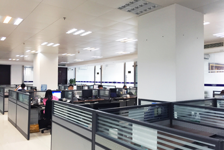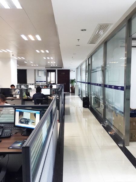 办公室全部采用透明玻璃隔离,玻璃上都有我们远景达LOGO哦