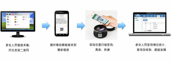 现如今二维码的应用是越来越广泛,各种大小会议使用二维码签到方式也愈发频繁,不仅加快了签到流程,同时对会议现场的管理也更加方便。二维码会议签到是一种新型的签到技术,指的是将会议签到信息储存在二维条码中,通过互联网技术(或短信)方式将二维码电子邀请函发送至嘉宾手机上,签到时通过特定的二维码识别设备对嘉宾手机二维码电子邀请函信息进行扫描、读取和识别,从而实现秒速签到、统计等功能。