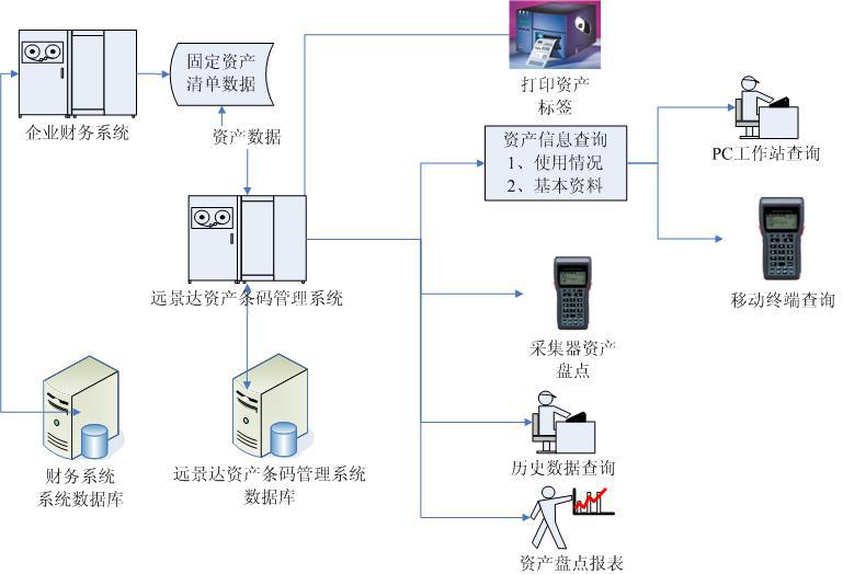 为了解决以上的问题,我们开发了《远景达固定资产条码管理系统》(以下简称《固定资产管理系统》)。《固定资产管理系统》的功能有:基础资料管理、固定资产标签输出、资产变更、资产盘点、固定资产盘点报表、资产信息查询等。