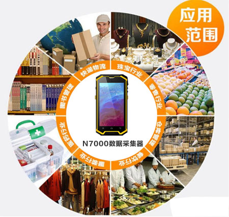(2)N7000数据采集终端:采用IP68高防护等级工业级外观设计,在N5000的技术上功能和性能实现了全面提升,更好地满足客户多方位需求;支持一维/二维条码扫描、NFC功能;双卡双待,4G全网通信,满足不同网络制式,电池容量达到5200mAh,能更好适应恶劣环境。