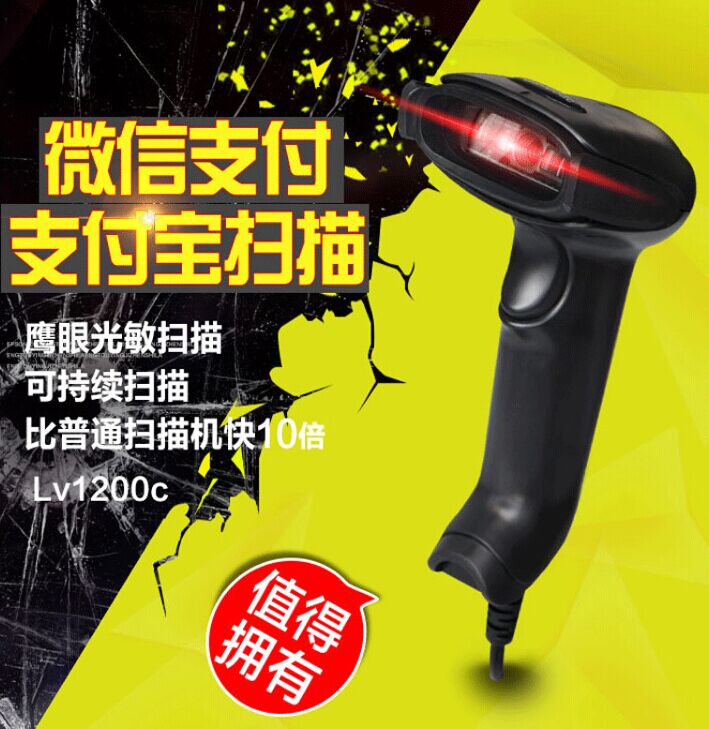 1300C红光二维码扫描枪 支付宝微信支付扫描枪 超市条码扫描;