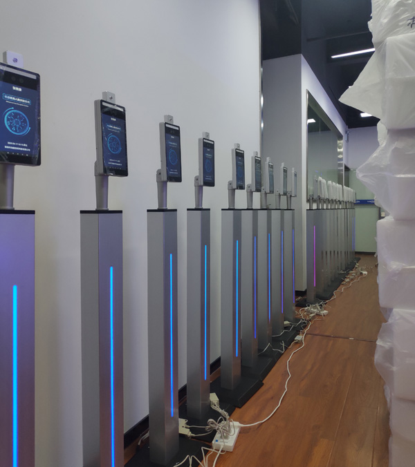 (深圳远景达—F2系列立柱式自动测温人脸识别一体机正在批量打包发货中)
