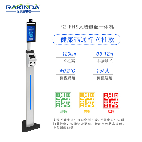 人脸识别面部测温一体机、立式人脸识别测温一体机、人脸测温门禁一体机、健康码查验人脸识别测温一体机等欢迎咨询深圳远景达(RAKINDA)了解人脸识别测温产品的价格、型号及其行业应用解决方案。作为业内公认的全球物联网自动识别应用解决方案的领航者,深圳远景达科技自主研发的智能防“疫”全新产品—具备红外人脸测温、健康码查验、身份证比对“三合一”的F2-FHS人脸测温一体机(健康码通行立柱款)已成为全国不少地区公共场所入口安置的新选择,也是助力于政府和疾控部门疫情防控的一大利器。