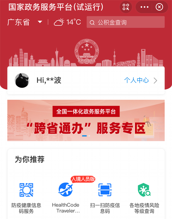2、点击国家政务服务平台进入小程序页面,可以找到防疫健康信息码的登记入口;
