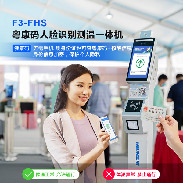 为方便体温检测及粤康码识别,深圳远景达(RAKINDA)作为健康码精准防疫的技术保障方,在省委、省政府的坚强领导下,在省政数局的指挥调度下,远景达物联网技术和服务团队持续优化(F2/F3-FHS系列)人脸测温门禁粤康码一体机等系列产品的功能,在提升安全性和性能的基础上快速更新迭代,适配最新的“粤省事”平台粤康码和国家政务平台机制。F2/F3-FHS实现了身份证信息与健康码信息的联动,支持刷身份证+扫粤康码/国康码查看健康码状态、14天行程、核酸检测情况和新冠疫苗接种情况等信息,隐私信息全部脱敏处理,数据存储可追溯,可以满足智能防疫管理的场景需求!不仅为老年人群体出行提供便利,而且通行效率大大提升,真正实现了“证码在手,通行无阻”!