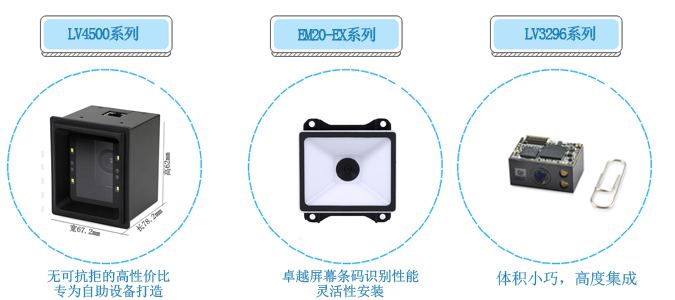 例如售卖机嵌入二维码扫描模块,凭借卓越的手机屏幕条码识读性能和良好的嵌入性可以轻松提升智能化,方便识别支付码(手机二维码)。在户外或半户外放置的自助售货机或多或少会遇到强光、弱光、反光和贴彩膜等各种环境下读取手机屏幕码的情况,而嵌入式LV4500系列二维码扫描器特别针对屏幕条码识读作了技术校验,优化了扫码距离、角度和补光效果,满足了自助终端设备在刷手机屏幕二维码时对扫码设备极速感应、大视窗口极速扫描和高频次扫描等诸多需求。