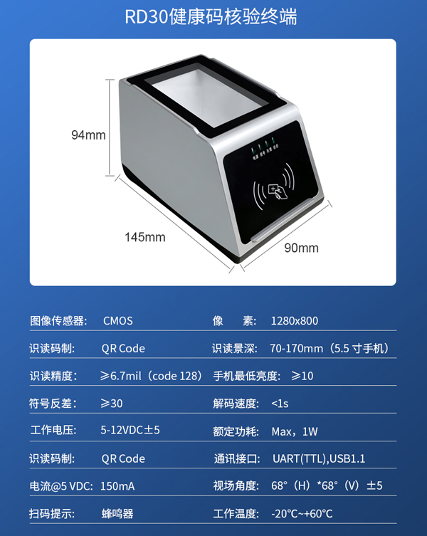 深圳远景达(RAKINDA)作为健康码精准防疫的技术保障方,特别推出了一系列自主研发的新型“健康码精准防疫核验产品”,囊括了健康码扫码设备(4800健康码模组及RD30健康码核验4G盒子)、健康码门禁、健康码人脸识别测温闸机、5G防疫健康码通行系统、健康码核验测温机、健康码人脸识别测温一体机、人脸测温健康码核验一体机、人脸识别测温扫码一体机、健康码人证核验测温门禁一体机、桌面核验登记终端等健康码防疫终端,核验速度快,准确率高,能高效筛查出异常情况,可以刷身份证+扫描健康码(地方省码/国家政务平台健康码),自动核查最新的健康码状态、14天行程、核酸结果和疫苗接种信息,手机扫码不再是必须项,解决了老年人、儿童等群体不便出示手机健康码等防疫突出难点。如果您有需求不妨联系我们!