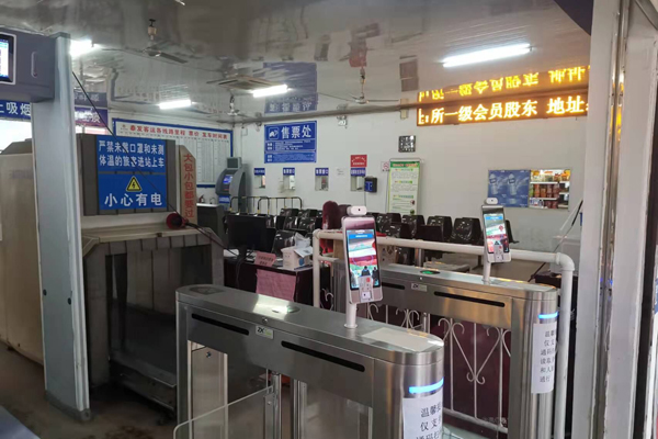 江西泰和动车站,汽车站在进一步强化车站疫情防控能力上也正是考虑到了这一点,为了快速实现健康码验证,保证进出车站通道畅通,于近期上线使用了深圳市远景达物联网技术有限公司自主研发的刷健康码身份证核验的F6-TH人脸识别测温门禁一体机及“江西赣通码”核验设备。