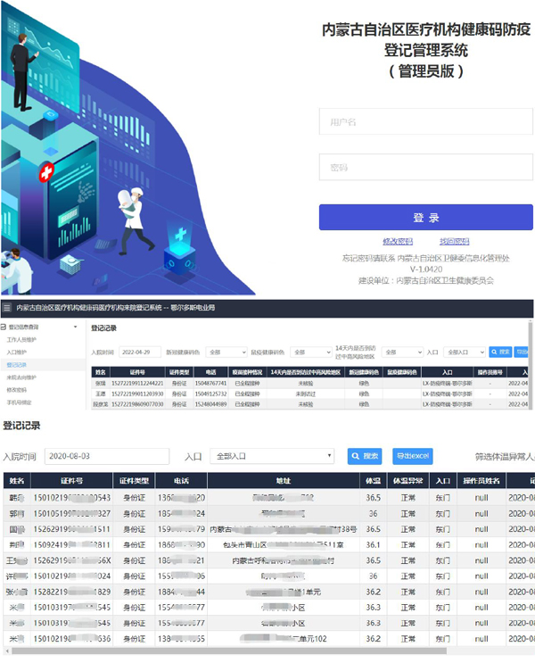 4、对接开发内蒙防疫平台场所卡口系统,设备支持在核验软件前端查看当日核验人数,查验人员记录与内蒙防疫平台场所码互联互通,实时同步数据到内蒙卫健委防疫平台和防控登记平台。可追溯可流调,卡口管理精准有效;