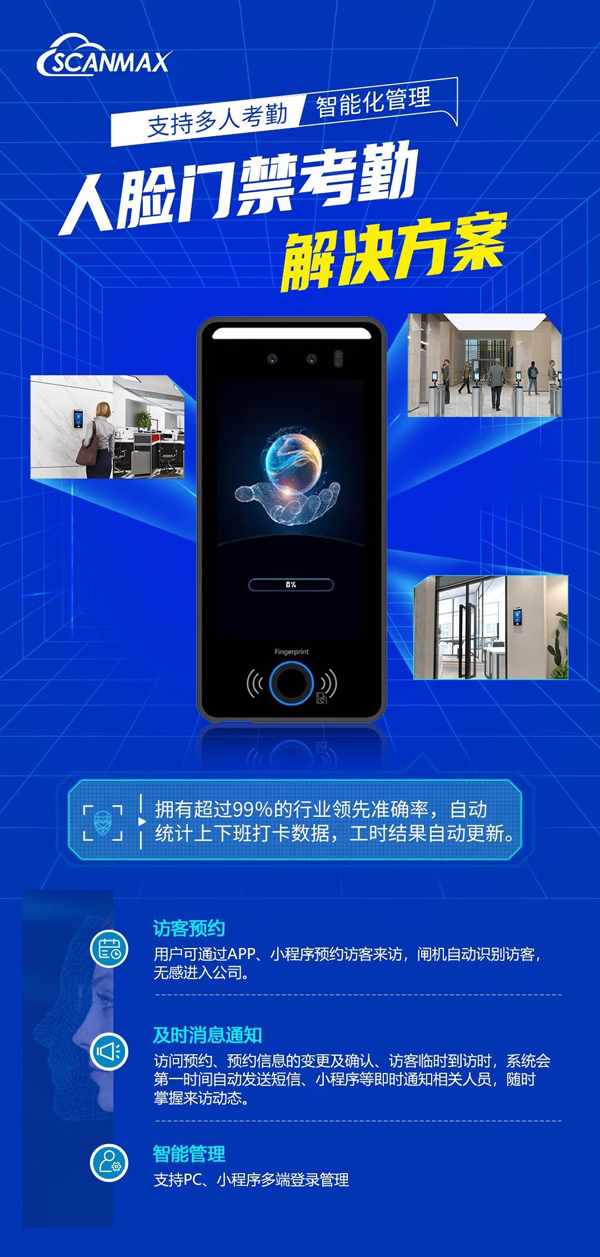 远景达人脸识别门禁一体机具备门禁控制功能,能够实现对门禁的开关控制,保障场所的安全性。同时,该设备还可以与门禁系统集成,实现对门禁系统的远程管理。借助其访客预约功能,用户可通过APP、小程序预约访客来访,闸机自动识别访客,无感进入。