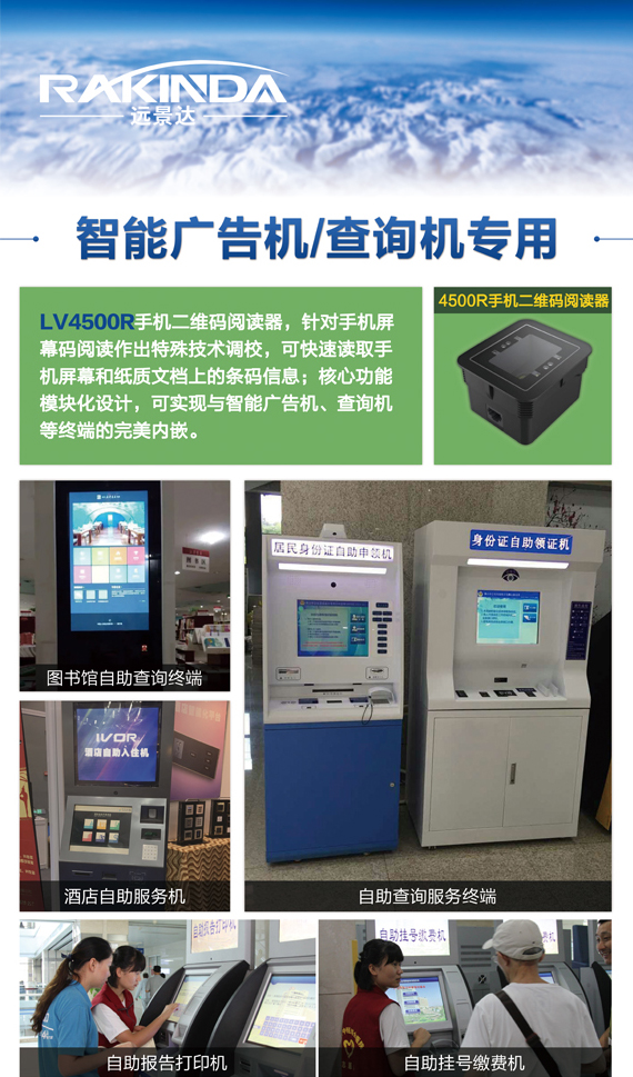深圳远景达(RAKINDA)专业提供自助终端专用嵌入式二维码扫描模组及应用解决方案,为自助终端行业产业升级及创新发展提供新动力。
