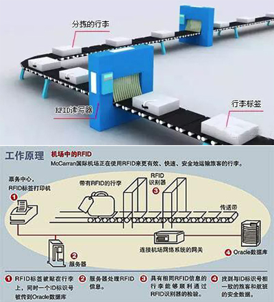 是否还记得在机场等待或自行挑拣行李的窘境,如今随着超高频RFID机场行李分拣管理系统的问世已经打破这尘封多年的问题啦!它指的是给每位机场乘客随机托运处的行李上粘贴超高频RFID电子标签,而电子标签中写入有旅客的个人信息、出发港、到达港、航班号、停机位和起飞时间等信息,行李流动的各个控制节点上,如分拣、装机处、行李提取处安装有RFID电子标签读写设备;当带有RFID标签信息的行李通过各个节点时,超高频RFID读写器会自动读取这些信息并将数据传输到数据库,以实现行李在运输全流程中的信息共享和监控。乘客可一站式完成值机和行李托运,无论是从便捷性还是科技感方面都大幅度提升。
