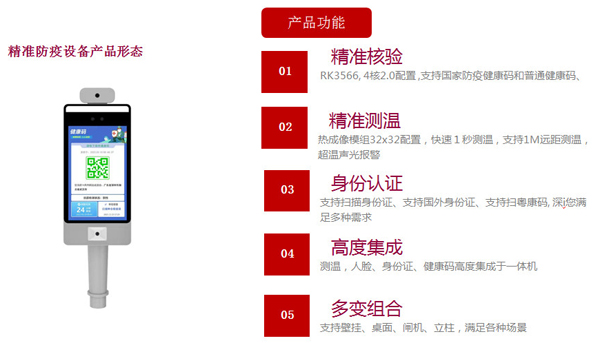4、配套硬件设备支持体温测量,健康信息核验、核酸信息核验、行程获取等;