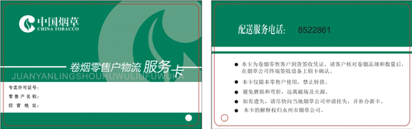 方案中:NFC卡是采用NXP恩智浦NTAG系列芯片的全球唯一码为核心生产的,属于RFID非接触式识别技术。配送过程中通过NFC卡的非接触式自动识别技术来识别客户信息与订单信息,以及配送完成后确认。NFC卡样式:(湖南省市级区分烟草物流配送中心样式卡)