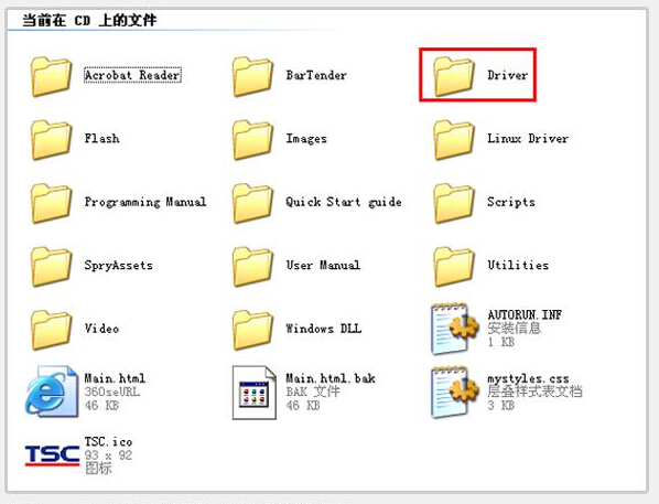 1、打印TSC 244机器光盘,然后再打开红色框Drinver文件;