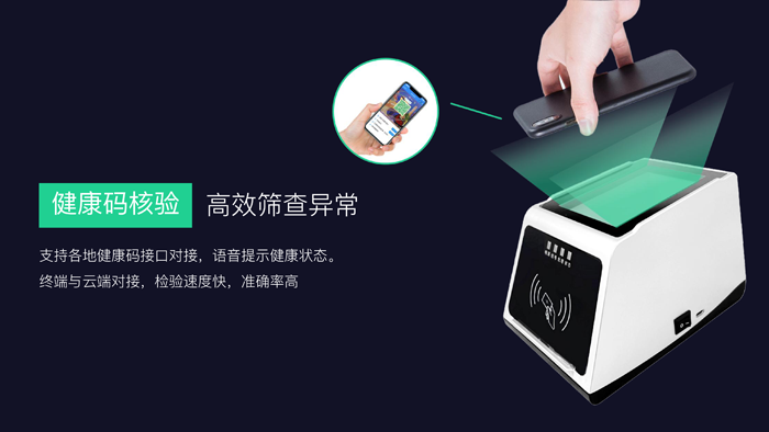 支持扫码验证国家平台健康码,身份证验证国家平台健康码,提供USB接口对接电脑插件使用。
