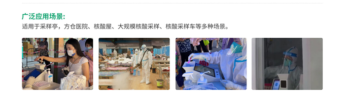 适用于采样亭,方仓医院,核酸屋,大规模核酸采样,核酸采样车等多种场景。
