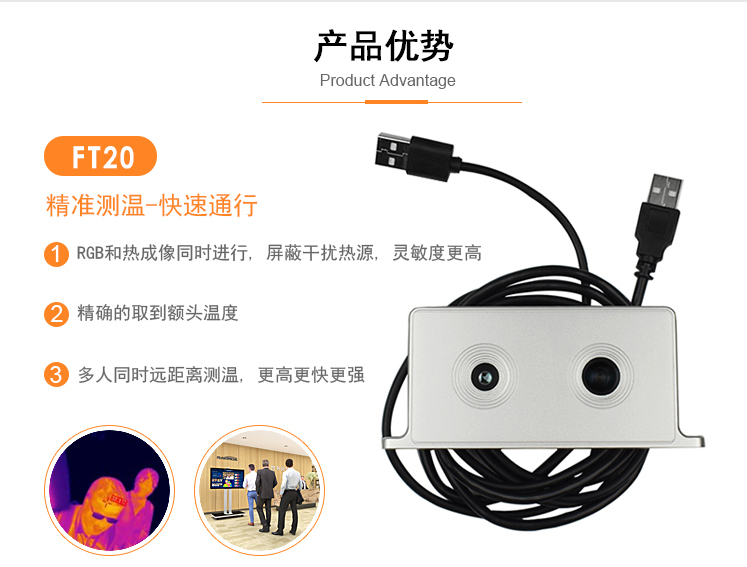 测温热成像模组FT20是基于晶圆级封装非制冷氧化钒红外探测器开发的一适配接入各种智能处理平台,具备高性能、低功耗、体积小、易于开发集成的特点,能够满足各类红外测温应用的二次开发需求。
