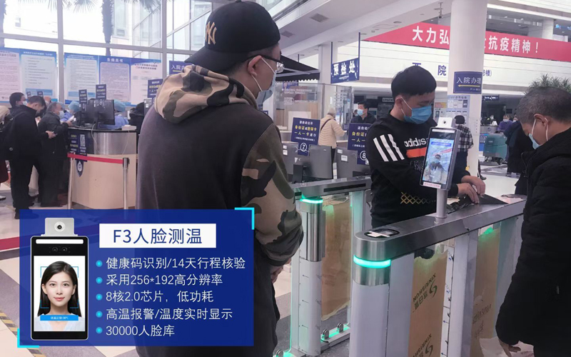 健康码验证人脸识别测温设备/F3-FHS-系列支持对接国家政务平台健康码及各地区健康码识别,测温数据实时上报健康码平台,同时依托于深度学习算法,人脸识别速度快、准确率更高,是常态化防控下热门的防疫AI测温产品。