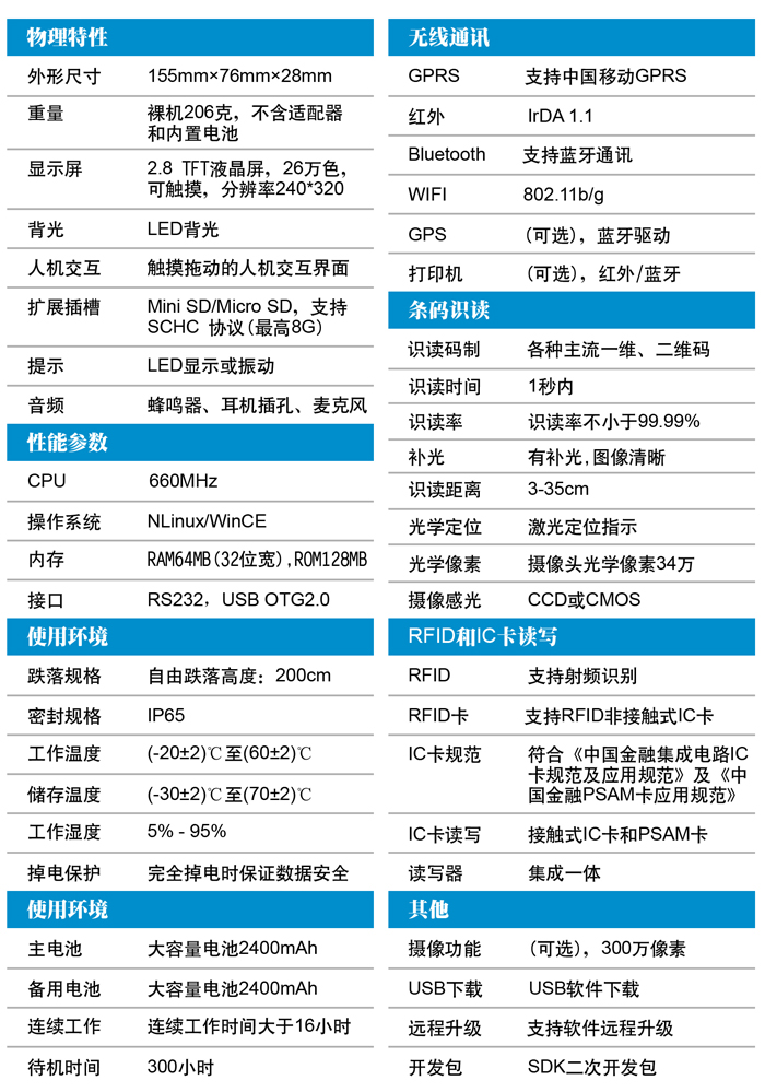 该产品内置强大的动物标识及疫病追溯系统,极大简化了动物防疫检疫的数据采集、录入、传输等业务操作;支持触控操作及手写输入,一个按键或触摸就可触发内嵌的识读引擎,轻松识别一维、二维等条码;体积小巧轻便,坚固耐用,可承受多次自2米高度跌落至水泥地面冲击,符合IP65工业标准的一款工业型数据采集终端。