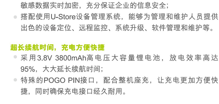 可充电式3.8V 3800mAh锂聚合物电池(工作时间≥8小时) |