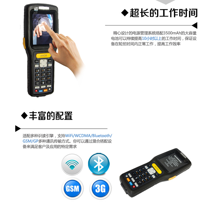支持WiFi/Bluetooth/GSM/GPRS/WCDMA多种通讯方式。