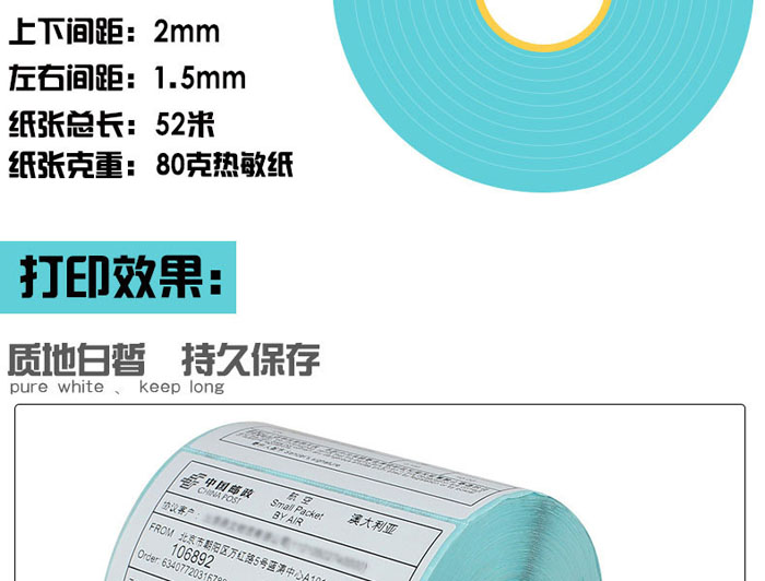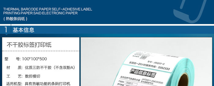 产品简介:三防热敏纸100*100不干胶标签【厂家定制直销】,粘性好、保质时间长、耐久性强;三防高品质防水、防油、防酒精;标签纸面白皙平整,配合热敏打印机,保证打印质量。