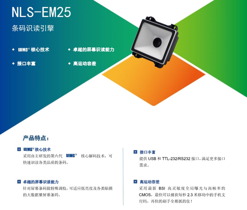 采用自主研发的第六代核心解码技术,可快速识读各类品质的条码。