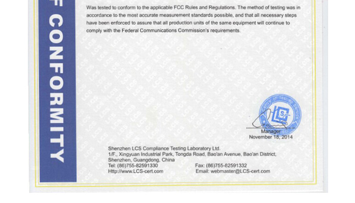 FCC Part15 Class B, CE EMC Class B |