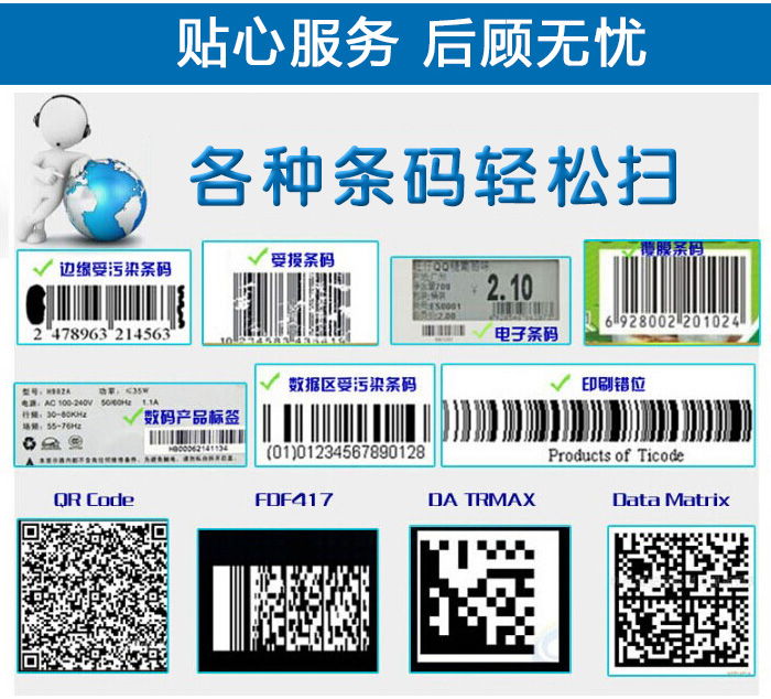 采用核心解码技术,可快速识读各类品质的条码。