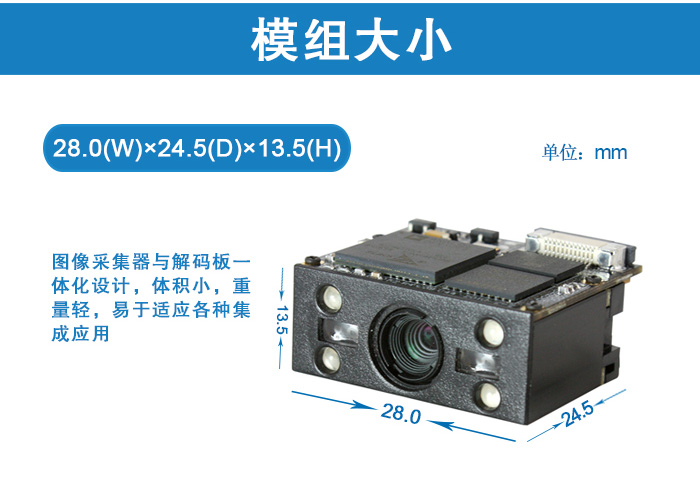 图像采集和解码一体化设计,可满足狭小空间应用需求。