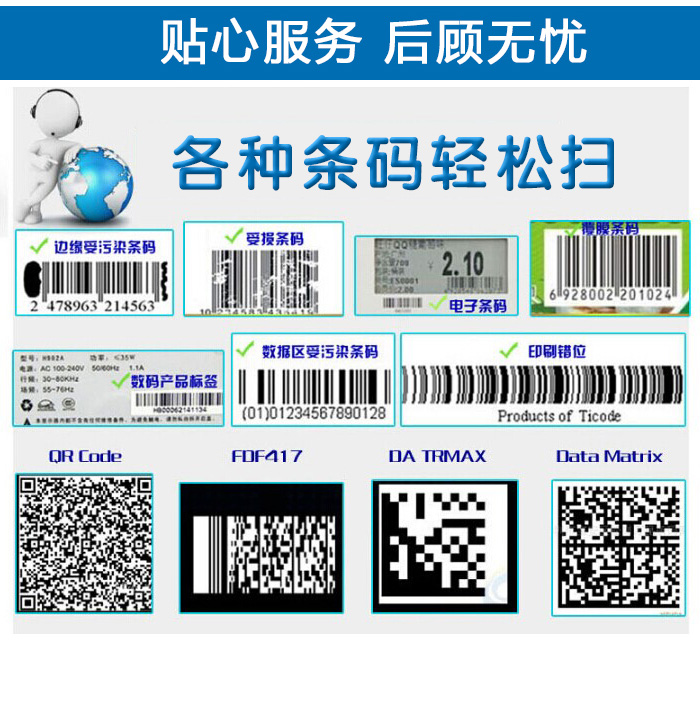 采用自主研发的核心解码技术,可快速识读各类品质的条码。