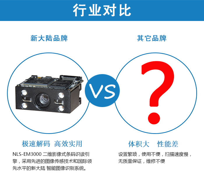 NLS-EM3000二维影像式条码识读引擎,采用先进的图像传感技术和国际领先水平的新大陆智能图像识别系统。先进的图像传感技术,避免了由于抖动或运动产生的图像畸变,与卓越解码技术的有机融合,使识读引擎可以轻松读取纸张、塑料等各种介质上的条码,性能强劲。