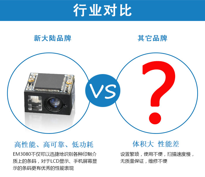 EM3080二维影像式条码识读引擎,应用了国际领先的芯片化系列智能图像识别技术,开创影像式二维条码识读引擎的新时代。