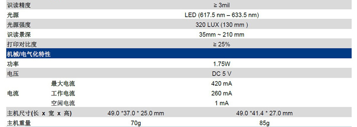 快速识读市场上主流一维/二维条码,却只需通常产品四分之一的功耗。