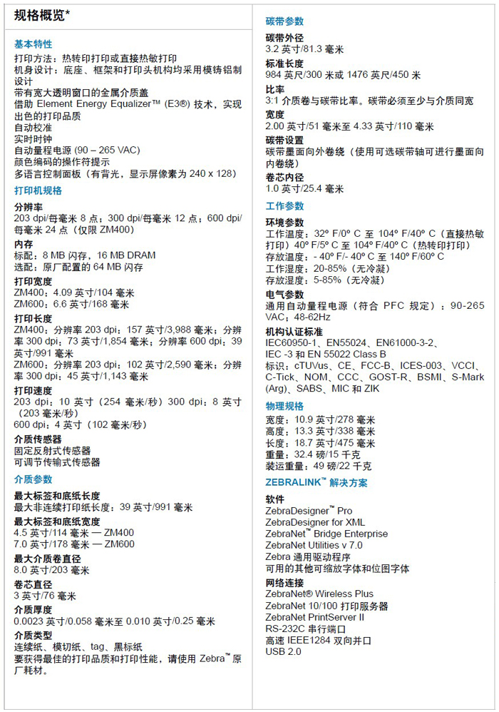 Zm400新型打印机能够更好地满足大多数仓储/制造和商业应用需求。通过 USB 2.0、安全的 802.11b/g 无线协议可同时进并口和以太网连接的 ZebraNet 10/100 打印服务器,更便捷地实现网络连接。