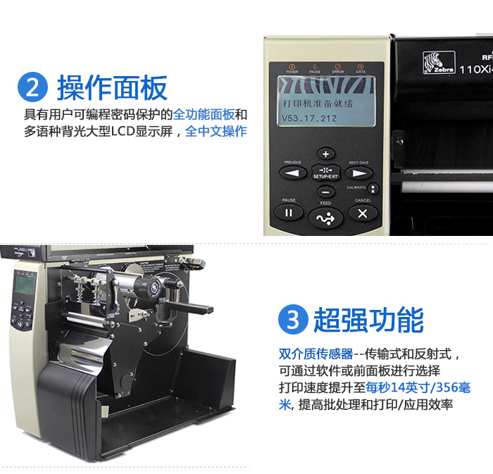 作为 Xi 产品线的主力产品,斑马Zebra 110Xi4 秉承了 Xi 系列产品的成熟优势。110Xi4 能够在各种环境下提高整体运营效率。改进包括: