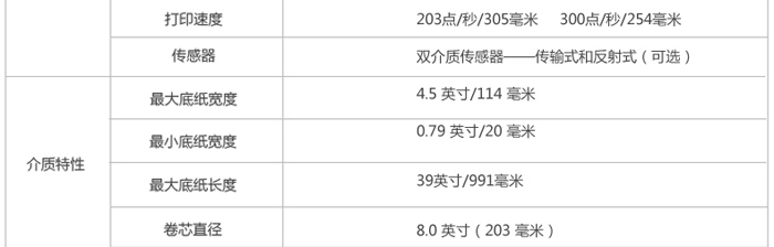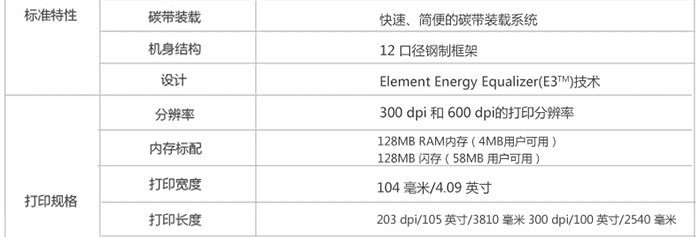 110Xi4 打印机提供 4.0 英寸(102 毫米)的打印宽度和 203 dpi、300 dpi 或 600 dpi(8 点、12 点或 23.5 点/每毫米)的打印分辨率。