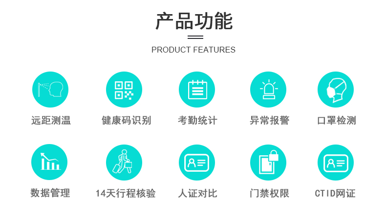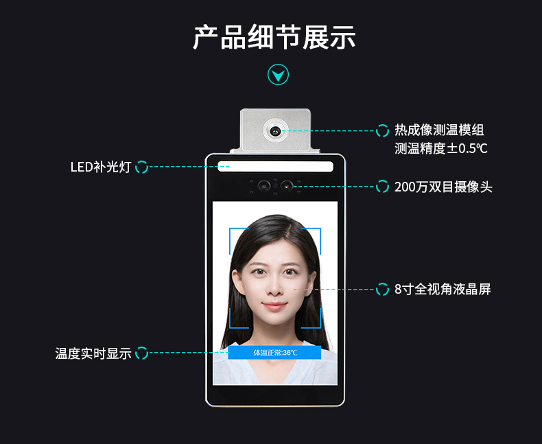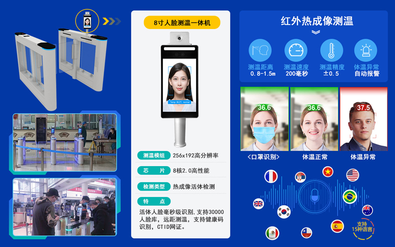 Ø 热成像测温、毫秒级精准识别、智能化身份验证、后台数据管理;